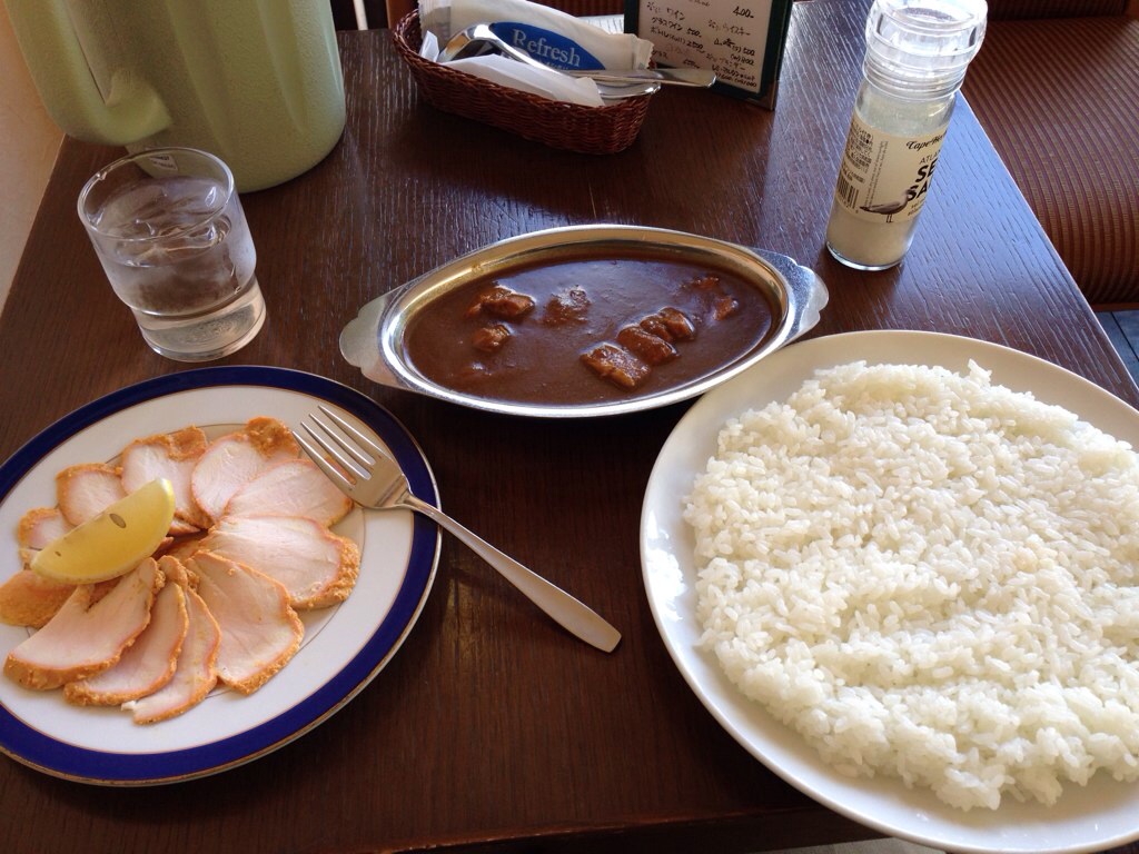 大辛のカシミールが名物だけど、胃に痛いレベルなので(^^;おとなしくポークカレーとコールドタンチキ。