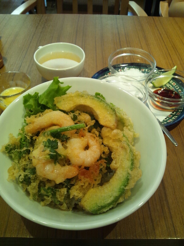 今日の昼飯は、アボカド天丼ランチ(980円)。