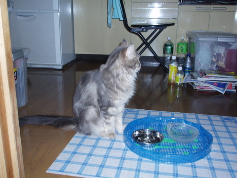 と言わんばかりに、空にしたウェットフードの食器の前から動きません...はいはい、いまあげるからね(^^;