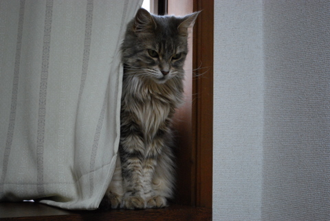 今朝、病院へ行く前に警戒態勢のジュディです。