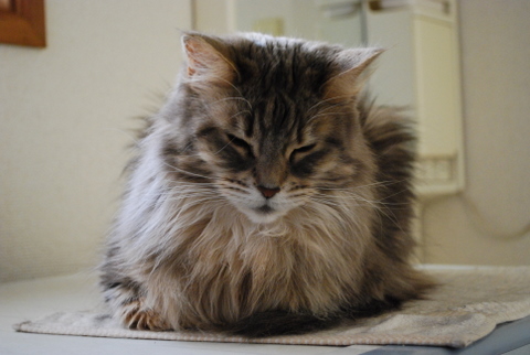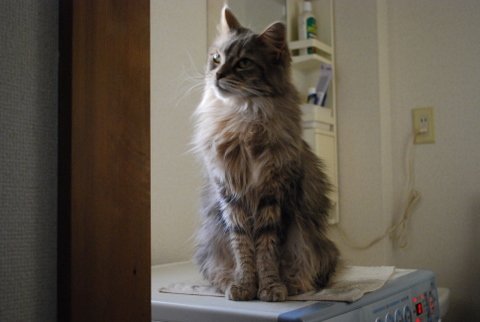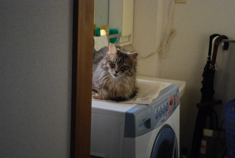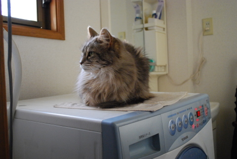 西からの薄日の中、乾燥を終えてあったかい洗濯乾燥機の上で(^^;和んでいるジュディです。