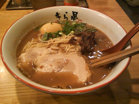 さて、明日は自分の人間ドック、ということで夕食は早め。駅前のきら星に珍しく行列がなかったので初食しました。確か、木曜日が定休日だと思っていたら、木曜日はギンギラ星として営業、と張り紙があり替え玉一回目は無料とのこと。一応明日のことを考えてw替え玉はやめて味玉豚骨(¥850)と今月のご飯(¥230)に。
