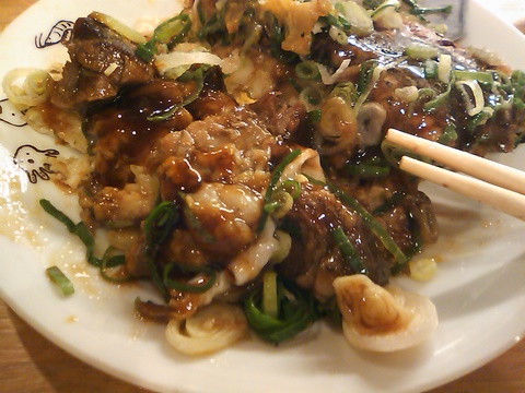 ほどよい味の生地に包まれて牛スジ(やわらか~)の切り身がたっぷり入っていて、甘辛ソースとねぎを和えて食べた味は、最高!ビールが進みます(^^)