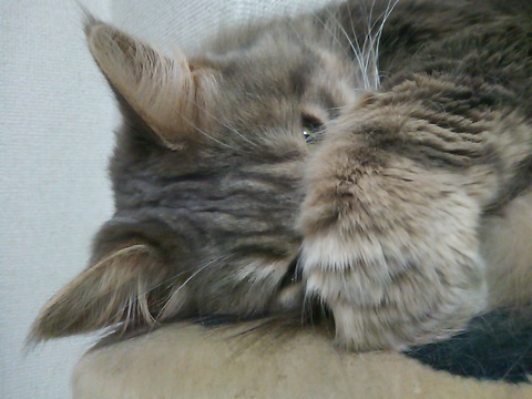 毛玉になっても(^^;油断せずに視線をこちらに向けて、左のガードをしているとことはさすが自宅警備部長です(^^)