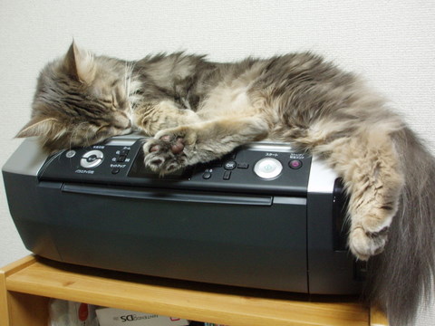 ⇒満腹になったら、プリンター上を占拠してZZZ...