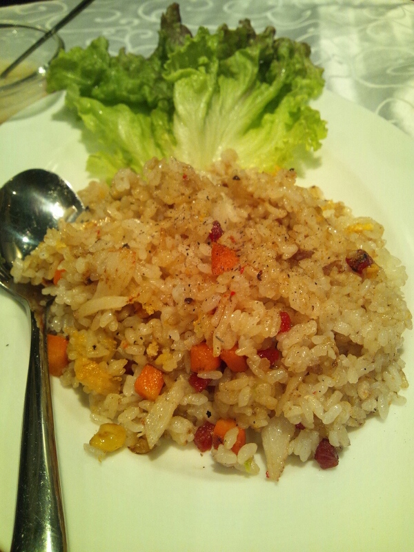 カニチャーハンは、日本の焼き飯風。皿の半分だけど他の料理と合わせると十分な量。