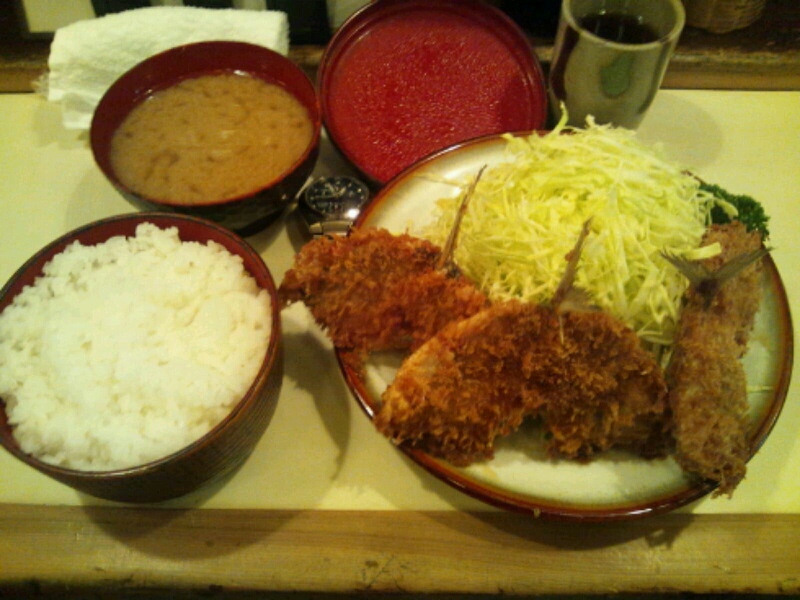 フライは小アジ三匹。手頃な大きさで小骨が全然なく、尻尾までキッチリ揚がって残すところのないフライをサクサクと…キャベツをバリバリと…シジミの味噌汁をゴクゴクと頂き満足。