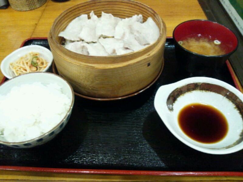 せいろにもやしを敷き、その上に豚バラスライスを載せて蒸したものだった。
