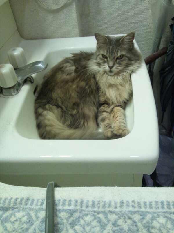 引っ越し先でも洗面台で涼をとるのかなぁ。
