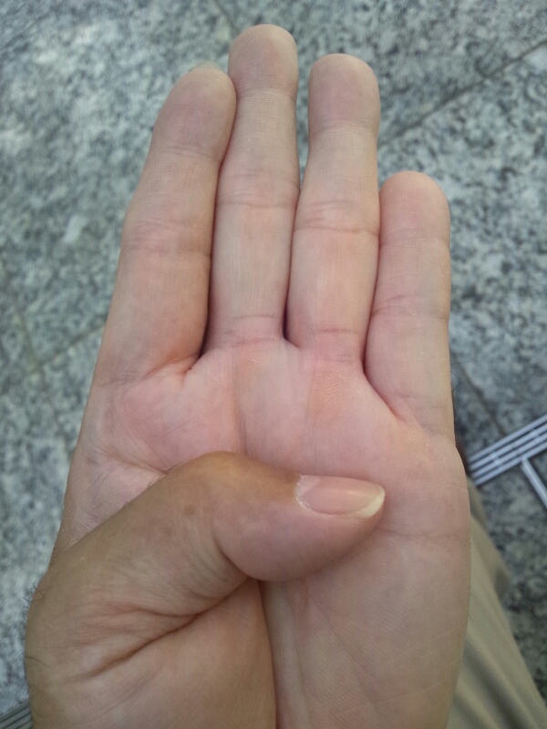 手術から4ヶ月半、親指ようやくここまで曲がるようになった。