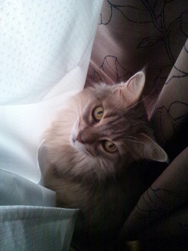 それから今日の昼まで、特に変化はなく落ち着いた様子。動物病院が今日明日休みなのでネットで調べたら、灰色の下痢は小腸系の消化不良だけど黒は出血と書かれており、心配だなぁ…人の心配をよそに、ついにカーテンで爪研ぎを始めようとしてる(T_T)Judy。