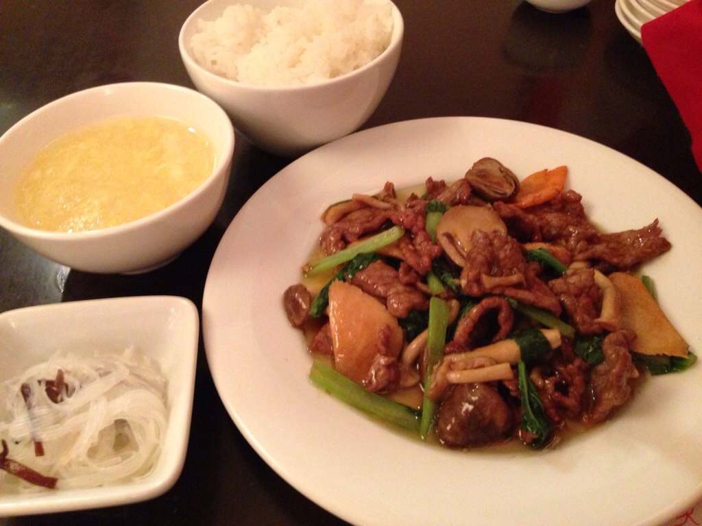 金燕酒家@区役所通りの牛肉オイスター炒め定食。