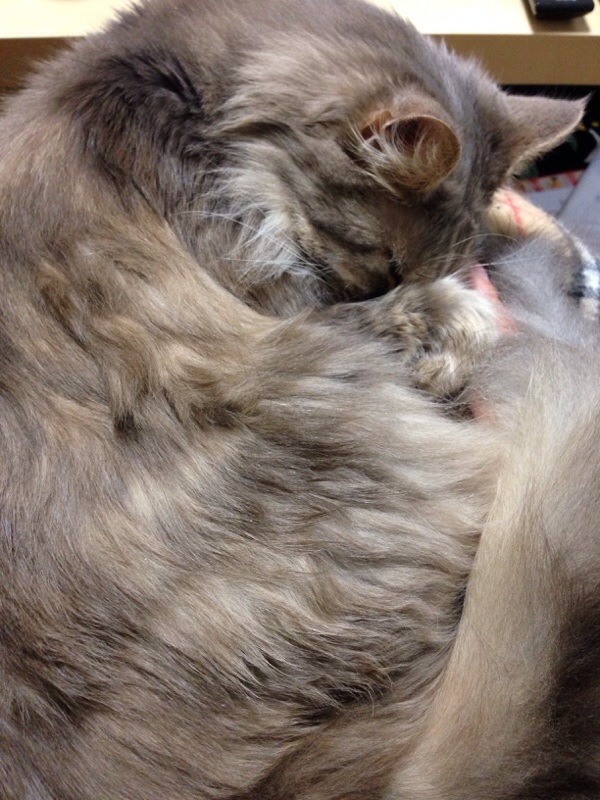 不調でダウンしている自分の側に座り込んだり乗ったり...