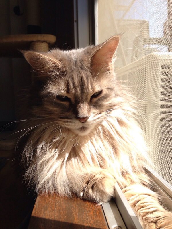 今日未明、半年ぶりに嘔吐したJudy、今は落ち着いてひなたぼっこ中。