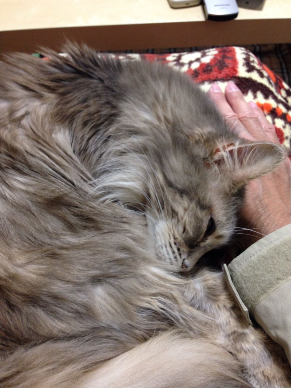 診察の結果、BUN、CREA共朝より下がっており、あえて言えばアンモニアが少し高め。先生と相談の結果、アンモニア対策の注射を打ってもらい0時過ぎに帰宅。その晩は香箱座りもせず、寝付けない様子だった。