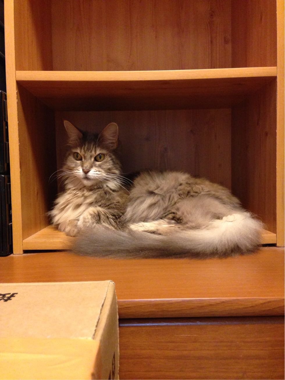 なんか変なところで澄まし顔してるのは、実は引越し荷造りの佳境の中の一枚だからです。