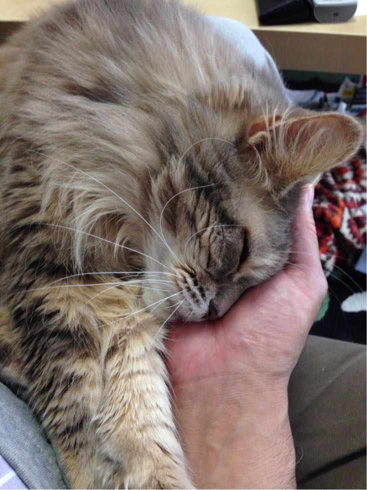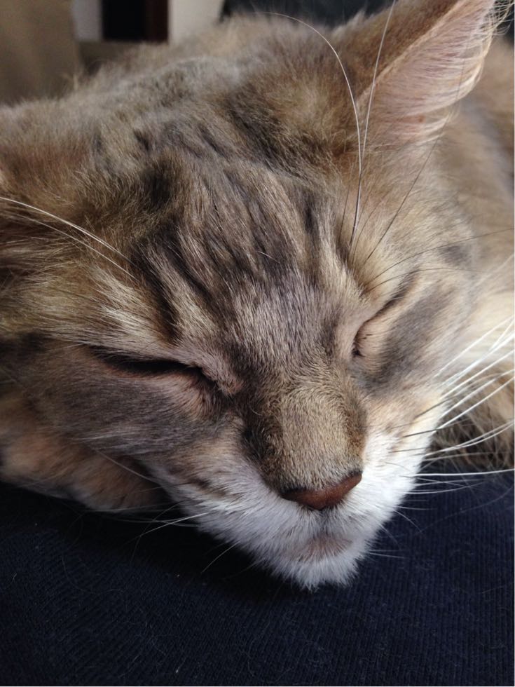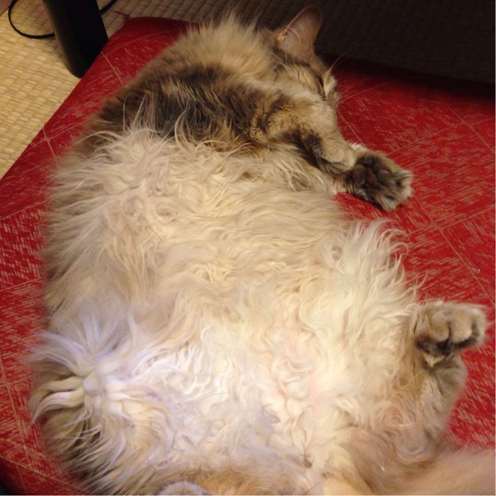 昨日は月例検診。7月なので年一回のワクチンもと思って病院へ行ったけど...数週間前からなんか右後ろ脚の付け根が出っ張ってきて、年で痩せたにしてはおかしいので組織検査したところ、悪性腫瘍の可能性が高いとのこと。明日以降できるだけ早く藤沢にある日大動物病院に連絡してもらい、診察と今後どうするかを相談することに。